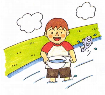 家庭から出る汚水はすべて下水管で終末処理場に集められ、きれいにしてから川や海に流されます。そのため、魚や他の生物が住むことのできる清流によみがえります。